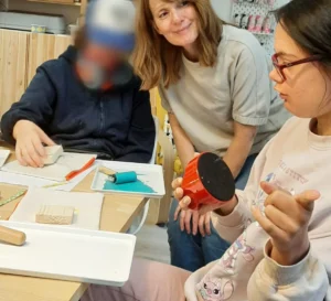 Tijdens de feestelijke heropening van het pand, georganiseerd door Urban Resort, gaf ik een workshop ‘bedruk je eigen t-shirt’ voor jongeren met een beperking. Daarnaast was er een open inloop voor iedereen om zelf een etui of tas te blockprinten. De tafels zaten vol, de inkt vloog rijkelijk en de sfeer was ontspannen en enthousiast.